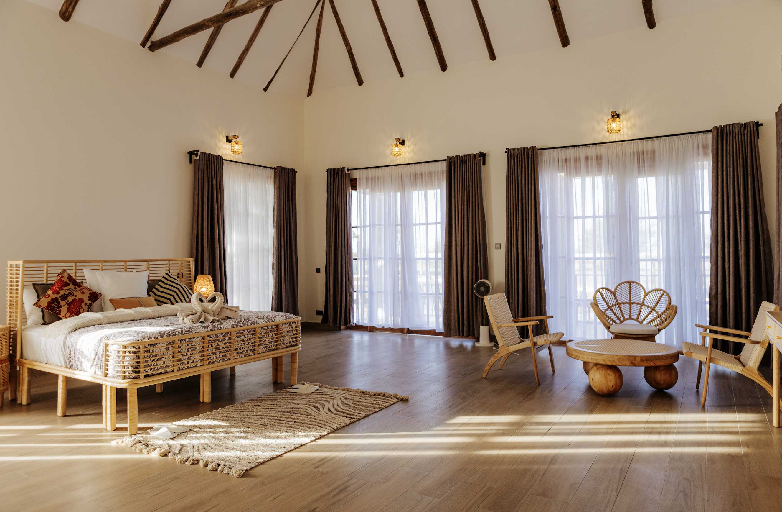 Esta lujosa instalación tiene 17 habitaciones disponibles, lo que garantiza total privacidad y una experiencia de safari más auténtica. De las 17 habitaciones que ofrece, 7 son dobles king-size, 5 twin, 2 triples y 3 familiares. Todos estos están amueblados con buen gusto con baños en suite, inodoros con descarga de agua, puertas fijas, terrazas privadas y otras comodidades esenciales para una experiencia de campamento de lujo.
